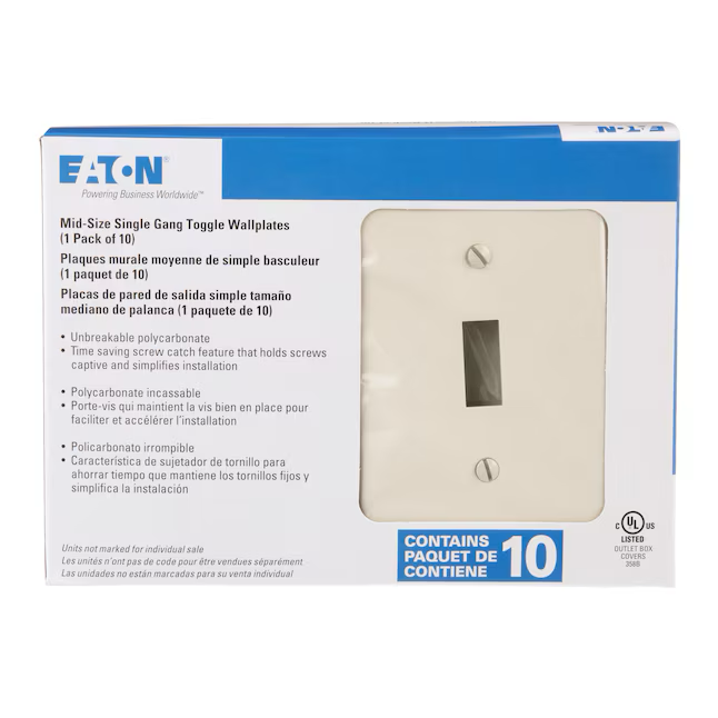 Placa de pared de palanca interior de policarbonato ligero de color almendra claro de 1 unidad Eaton (paquete de 10)
