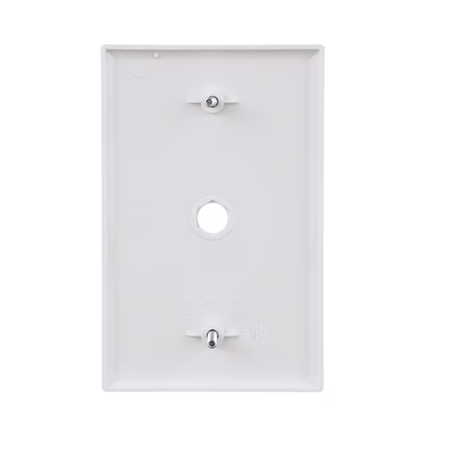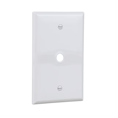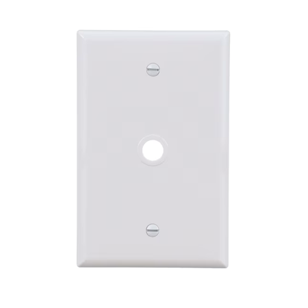 • Placa de pared de tamaño mediano, de una sola salida, con orificio de 0,40 In para aplicaciones telefónicas y coaxiales.