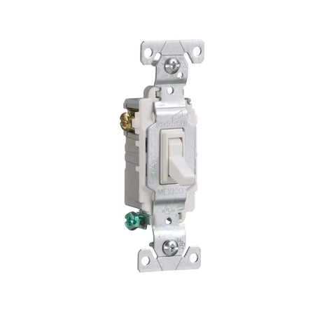 Eaton Interruptor de luz de palanca de 3 vías, 15 amperios, color blanco