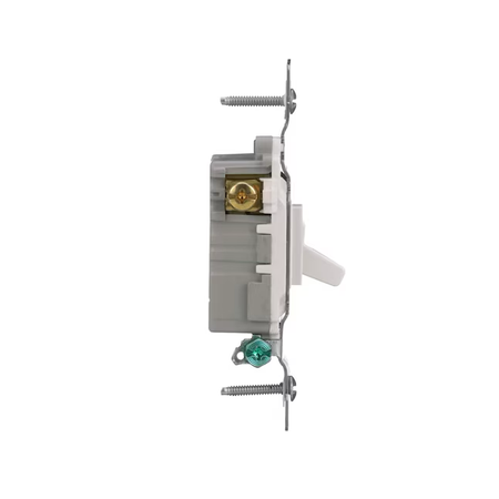 El interruptor de palanca pequeño de tres vías con acabado blanco ofrece una capacidad de 15 A, 120/277 V y está diseñado para brindar calidad, confiabilidad y rendimiento superiores en una variedad de aplicaciones comerciales y residenciales.