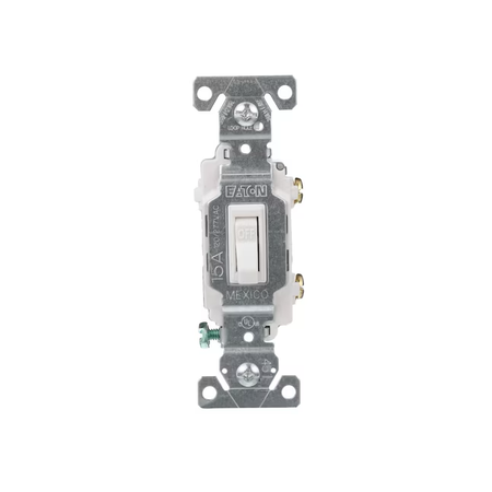 Eaton Interruptor de luz de palanca unipolar de 15 amperios, color blanco