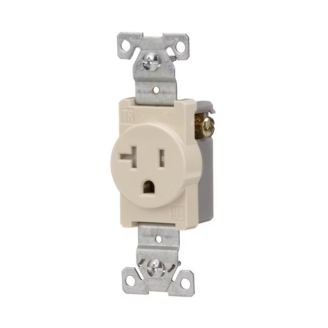 Tomacorriente redondo residencial/comercial resistente a manipulaciones Eaton, 20 amperios, 125 voltios, color almendra claro
