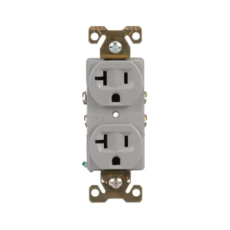 • El receptáculo dúplex de grado industrial con acabado gris ofrece una capacidad de 20 A y 125 V capaz de soportar los entornos más abusivos y sobresalir en aplicaciones que requieren el más alto nivel de rendimiento.