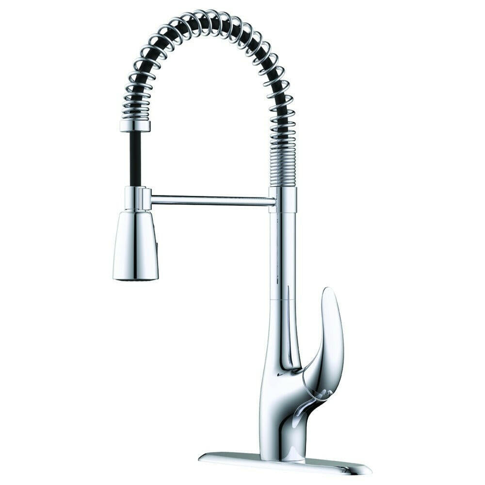 El grifo de cocina de resorte con rociador y preenjuague EZ-FLO presenta un diseño contemporáneo con elegantes curvas y un acabado atemporal que le da un aspecto de transición a una variedad de estilos de decoración. Este grifo de cocina tiene un diseño atrevido con un cuello de manguera negro y un resorte llamativo que lo hace destacar entre otros grifos, dándole a su cocina un aspecto más profesional y culinario. Las hermosas curvas de la base fluyen impecablemente a través del cuerpo del grifo equipado con una sola manija de palanca de metal para ajustar con precisión las temperaturas frías y calientes. La forma del cuello y el resorte se mantienen en condiciones óptimas con el apoyo de una barra de recorte que sostiene un hermoso rociador de cabeza ancha para un fácil agarre. Este grifo de cocina le permite pasar fácilmente de un chorro de agua aireado a un potente rociador de enjuague con un botón intuitivo que se presiona hacia abajo. Está equipado con un cartucho de disco cerámico de por vida y vías de agua híbridas. Este grifo está diseñado para durar y dar un toque contemporáneo a cualquier cocina. El acabado cromado resiste la descamación y la corrosión. Sin plomo para beber agua segura. Aprobado por NSF y UPC. 1 año de garantía.