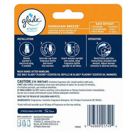 Glade Ambientador de recambio Hawaiian Breeze de 0,67 onzas líquidas (paquete de 2)