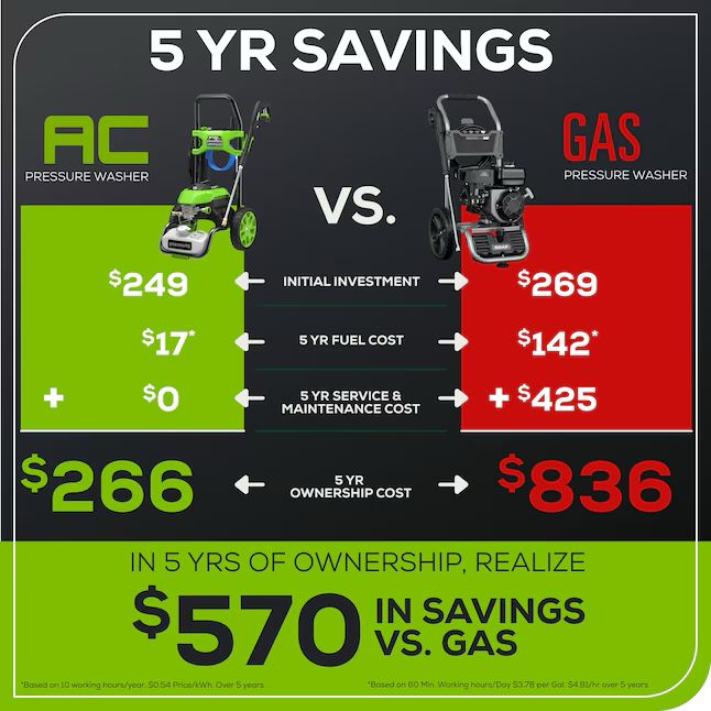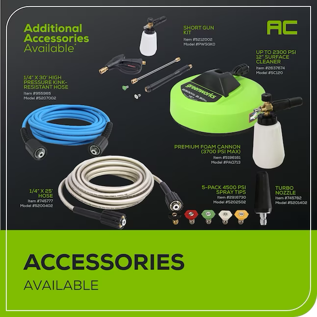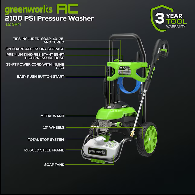 Lavadora a presión de agua fría Greenworks 2100 PSI 1.2 galones