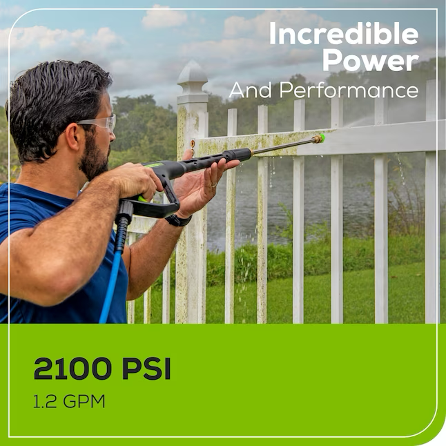 Potencia: Potente lavadora a presión eléctrica residencial con 2100 PSI MÁXIMOS a 1,2 GPM