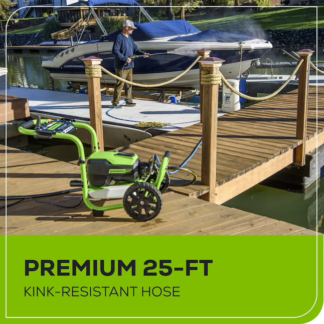 Innovadora tecnología de motor Greenworks TruBrushless™: adapta automáticamente la potencia del motor para obtener la máxima potencia de limpieza con cualquier boquilla; Hasta el doble de potencia de limpieza (Unidades de limpieza = PSI x GPM) en comparación con los principales competidores