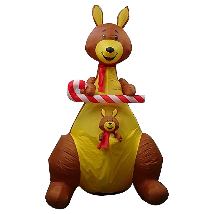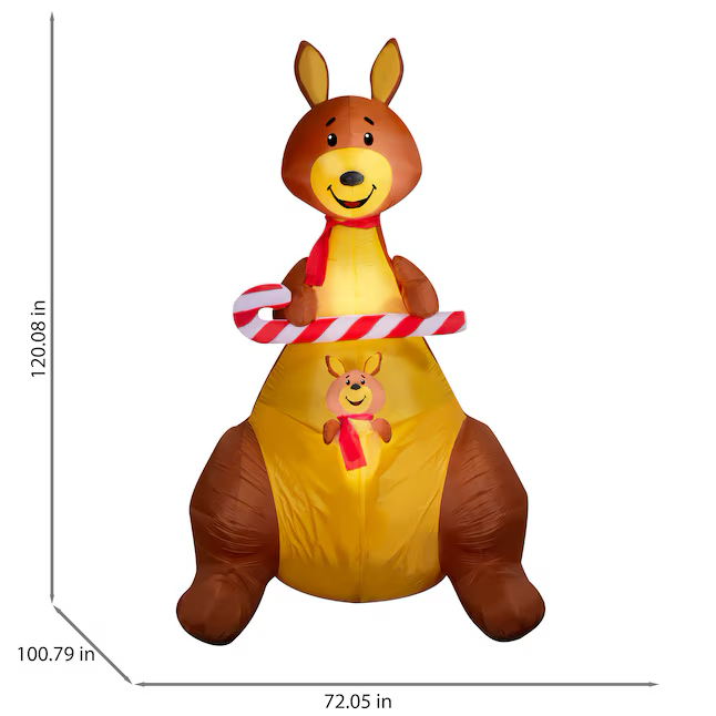 ¡Buen día, amigo! ¡Lleva el interior de Australia a tus decoraciones de temporada a lo grande con este canguro navideño de 10 pies! Este inflable gigante Airblown® presenta una mamá canguro con un gran bastón de caramelo y su adorable pequeño canguro con bufandas rojas a juego. Único e impresionante, este canguro inflable gigante es una excelente incorporación a tus decoraciones navideñas al aire libre. La instalación es muy sencilla para la decoración navideña más fácil de la historia. Solo tienes que enchufarlo, fijarlo con estacas y ver cómo se desarrolla la magia. Muestra este inflable gigante de canguro como un elemento independiente o combínalo con otros inflables Airblown para crear una escena personalizada. ¡Sé el centro de atención de la cuadra con un encantador canguro y su canguro! Incluye todo lo necesario para una fácil instalación.