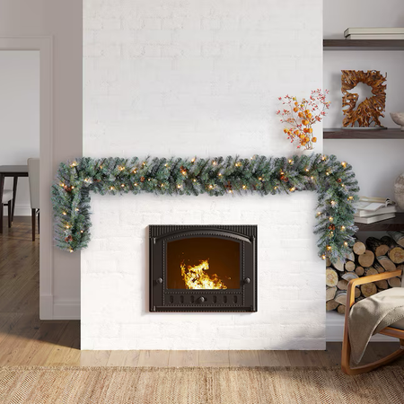 Guirnalda artificial de pino Madison de 9 pies con luces incandescentes transparentes y toma de corriente preiluminada para interiores y exteriores de Holiday Living