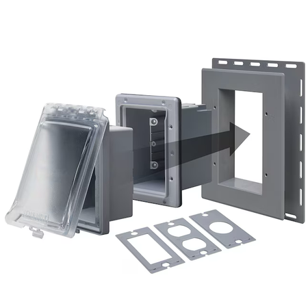 Cubierta para caja eléctrica resistente a la intemperie de plástico gris rectangular de 1 unidad Hubbell TayMac