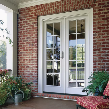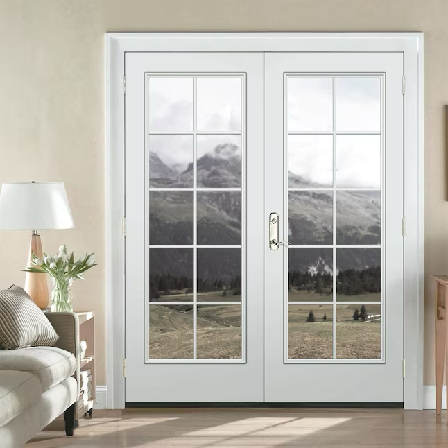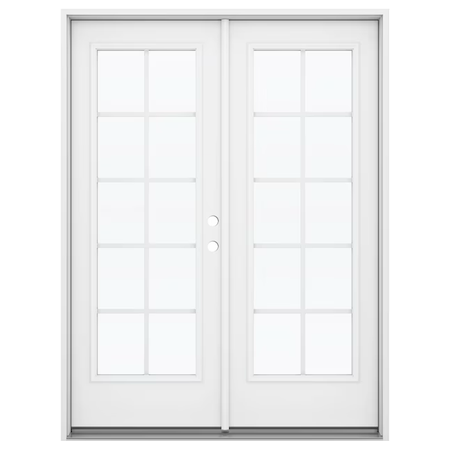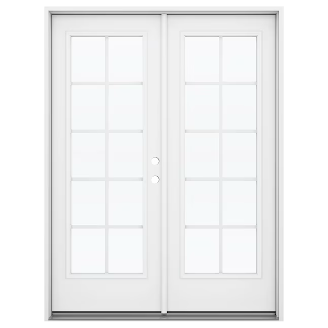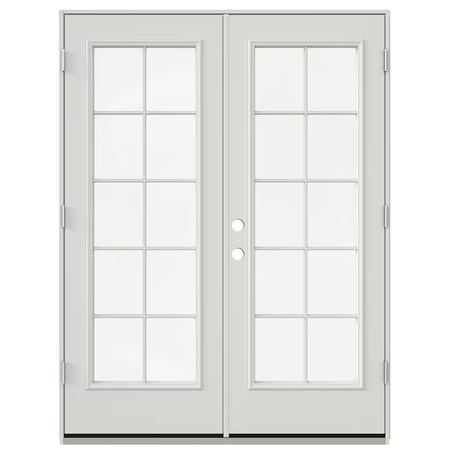 JELD-WEN Rejillas externas de baja emisividad de 60 x 80 pulgadas Puerta de patio doble francesa abatible hacia la izquierda de acero imprimado