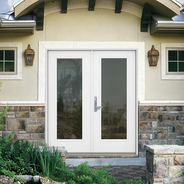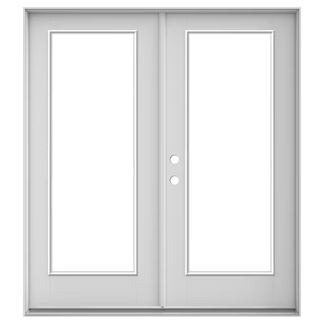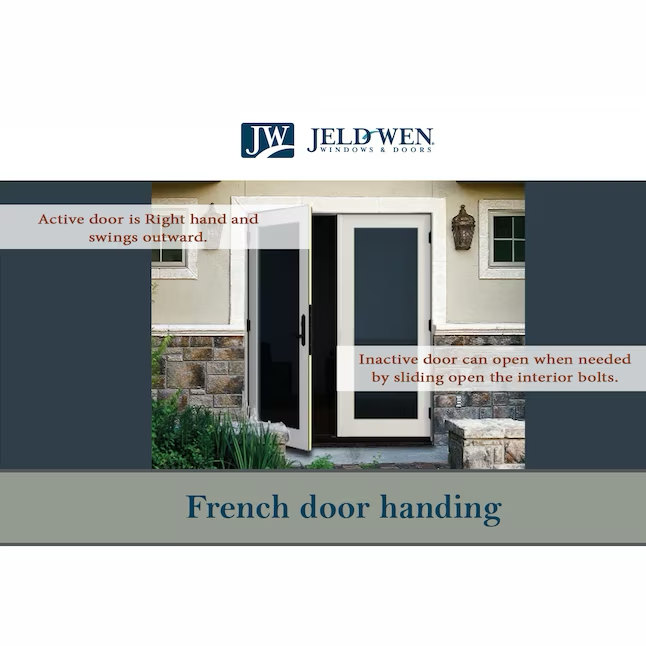 JELD-WEN Puerta doble para patio francesa de apertura hacia la derecha, de fibra de vidrio imprimada de baja emisividad, de 72 x 80 pulgadas