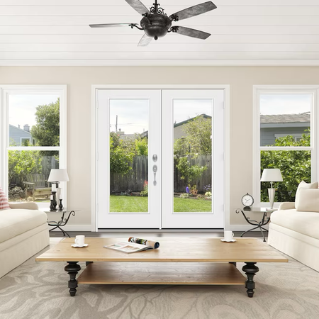 Las puertas para patio de fibra de vidrio estilo francés JELD-WEN están diseñadas para ser resistentes y fuertes, por lo que puede estar seguro de que serán seguras, fáciles de cuidar, energéticamente eficientes y confiables durante muchos años. La fibra de vidrio es una opción popular debido a su durabilidad y apariencia exclusiva, que imita las puertas tradicionales pintadas de madera. Están diseñados para resistir deformaciones, putrefacción y roturas, lo que los convierte en una opción económica, duradera y atractiva.