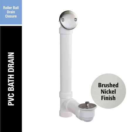 Drenaje de bola de rodillo Keeney de 1,5 pulgadas de níquel cepillado, blanco/níquel cepillado, con tubo de PVC
