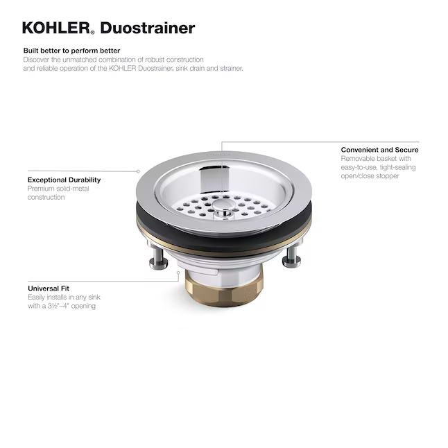Colador KOHLER Duostrainer de latón cromado pulido de 3,5 pulgadas