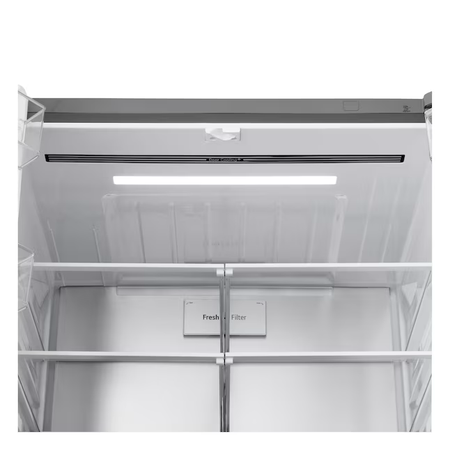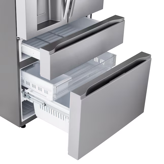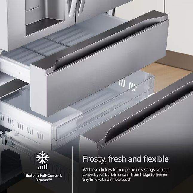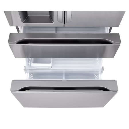 Este refrigerador MAX™ de profundidad estándar de 4 puertas no solo le brinda espacio: aporta un nuevo nivel de organización, flexibilidad y estilo a su cocina. Las elegantes puertas de panel plano con diseño de doble manija para una fácil apertura añaden una sensación de primera calidad. Un diseño de puerta resistente a los portazos permite que las puertas del refrigerador se cierren suave y silenciosamente. Las puertas francesas en la parte superior ofrecen fácil acceso a los alimentos frescos, mientras que los cajones dobles debajo significan que ya no tendrá que hurgar entre pilas de productos congelados. El versátil Full-Convert Drawer™ se convierte de refrigerador a congelador con solo un toque, con 5 configuraciones de temperatura para un almacenamiento óptimo de una variedad de productos frescos o congelados.
