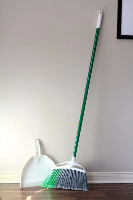 Libman Escoba vertical de ángulo multisuperficie de fibra de poliéster de 13 pulgadas con recogedor