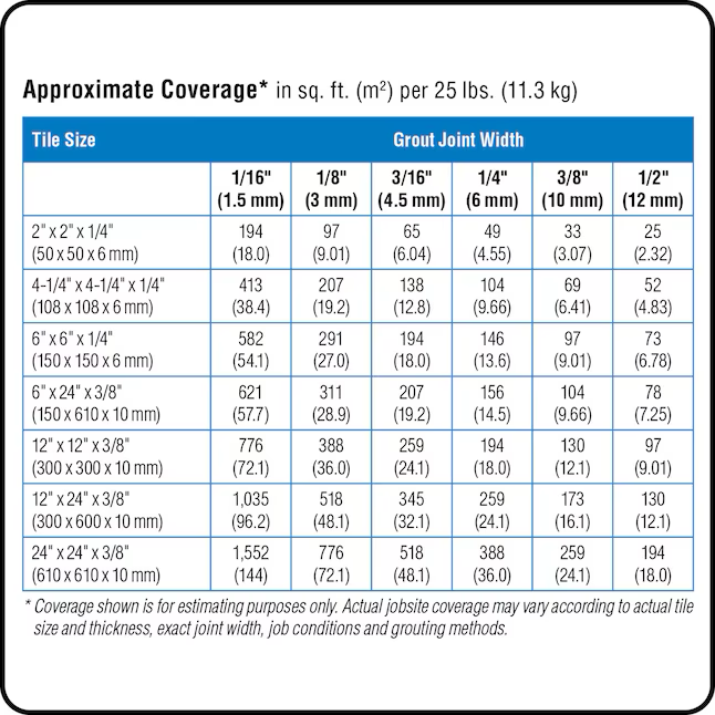 • Lechada todo en uno para anchos de juntas de 1/16 pulg. a 3/4 pulg., reemplaza la necesidad de comprar una lechada con arena y sin arena para el mismo proyecto