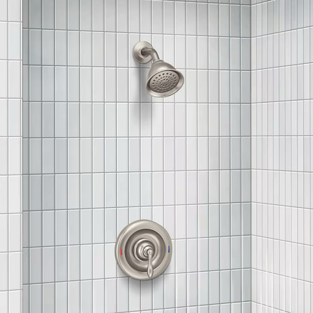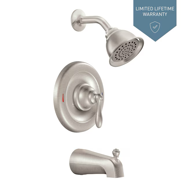 Grifo monomando para bañera y ducha de níquel cepillado Moen Caldwell Spot Resist con función única y válvula incluida