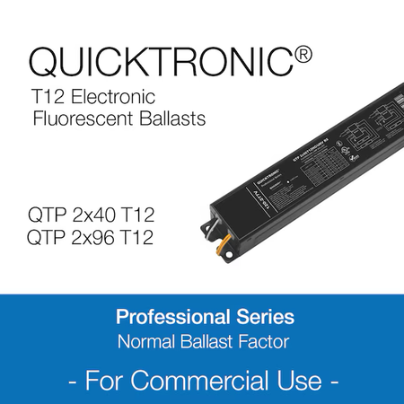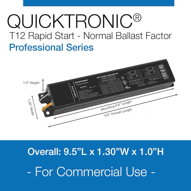 SOLO PARA USO COMERCIAL: El balastro QTP T12 es una solución de 2 lámparas