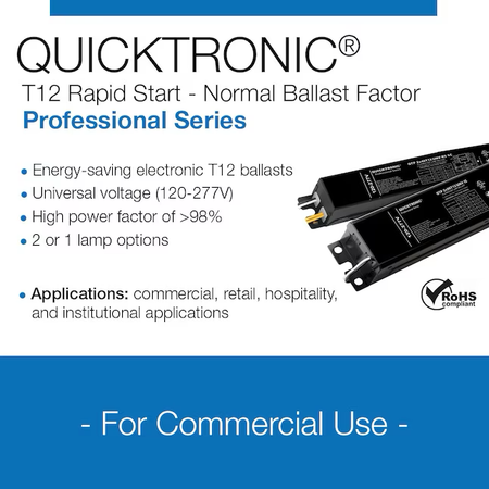 Balastro de luz fluorescente comercial de 2 bombillas QUICKTRONIC T12
