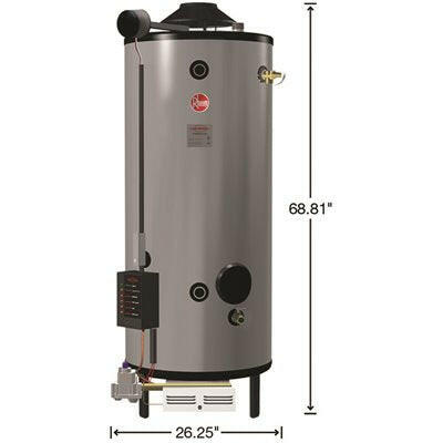 • Specifications Clasificación BTU 199900 Certificaciones y listados Listado CSA, listado UL Acabado Familia Gris Tipo de combustible Gas Interior/Exterior Interior Capacidad nominal del tanque (galones) 76 Tamaño del paquete 1 Profundidad del producto (pulg.) 26,25 Altura del producto (pulg.) 68,813 Peso del producto (libras) 523 Ancho del producto (pulg.) 26,25 Tipo de ventilación atmosférico Calentador de Agua Tipo Gas Gas Natural