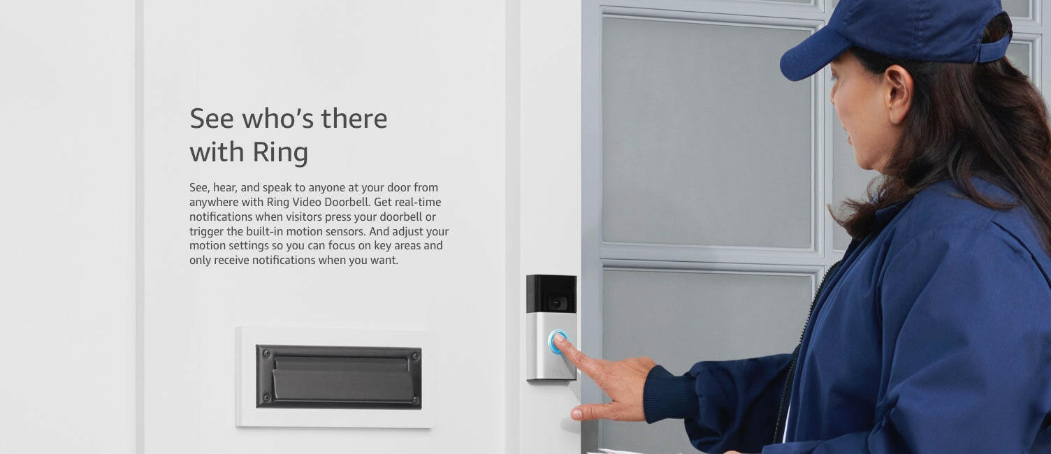 - Emparéjelo con dispositivos seleccionados habilitados para Alexa para habilitar anuncios y conversación bidireccional para un monitoreo conveniente en el hogar. Con un plan Ring Protect (la suscripción se vende por separado), Alexa también puede hacer anuncios de voz y mostrar automáticamente videos en vivo en un Echo Show, Fire TV o Fire Tablet cuando su Ring Doorbell detecta una persona o un paquete.