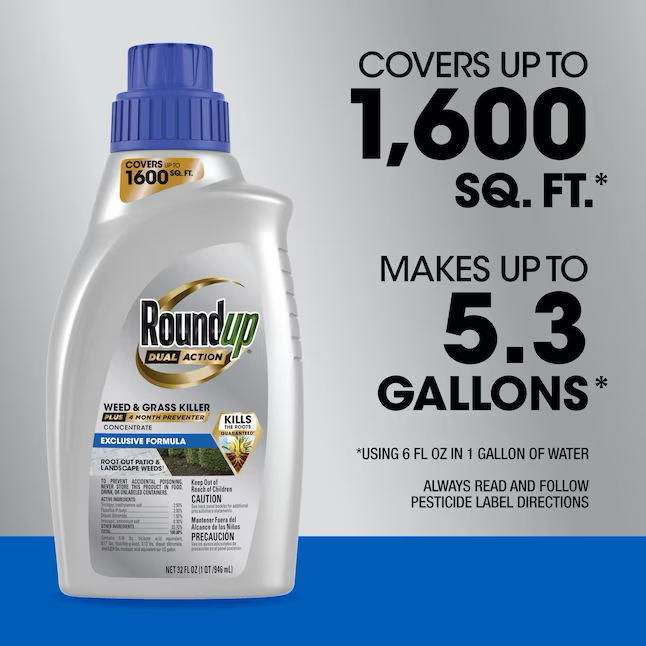 Roundup Dual Action Plus Concentrado preventivo de 4 meses 32 onzas líquidas Mata malezas y pasto concentrado