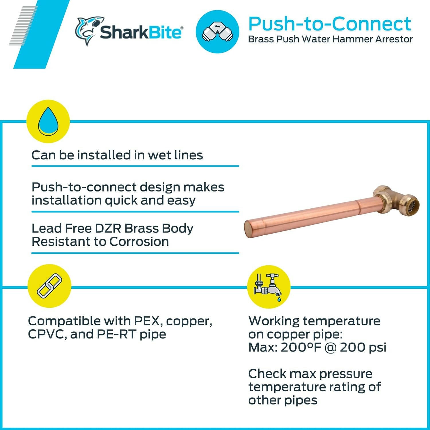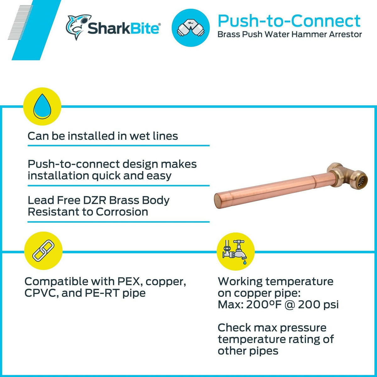 Supresor de golpes de ariete de latón SharkBite de 1 pulg. (comercial)