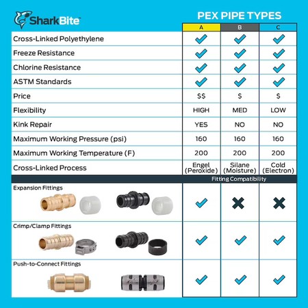 Aprobado para su uso con accesorios de expansión PEX (F1960), de presión para conectar (ASSE 1061), de engarzado de plástico (ASTM F2159) y de latón (ASTM F1807).
