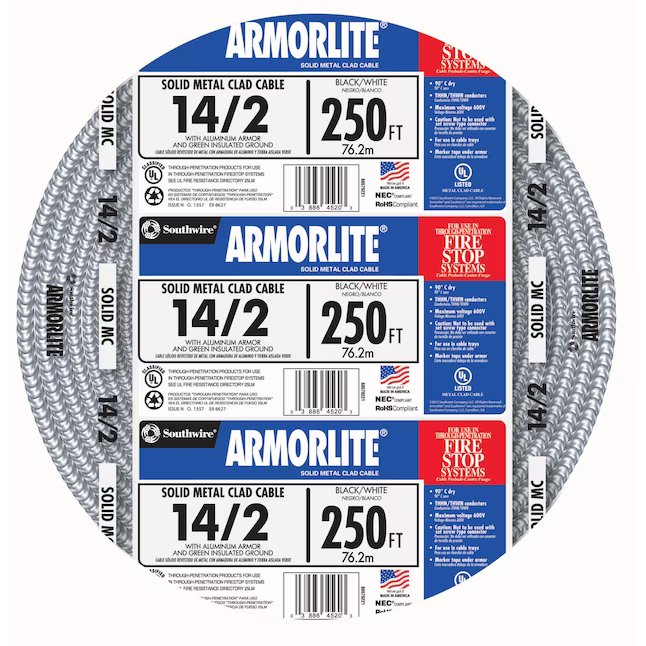 Cable Mc de aluminio sólido 14/2 de 250 pies Armorlite de Southwire