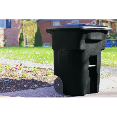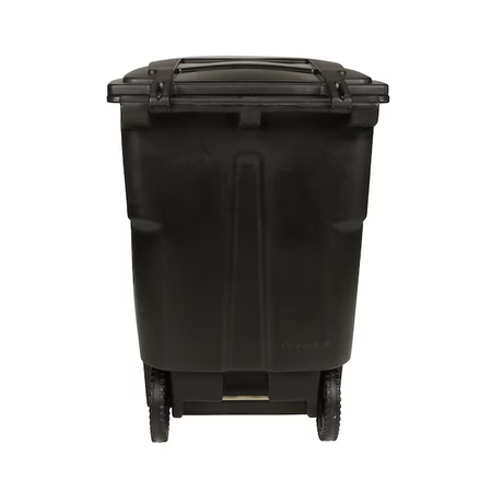Toter Bote de basura con ruedas de plástico negro de 96 galones con tapa para exteriores