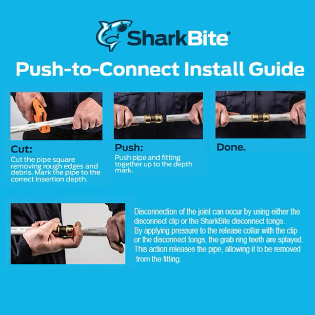 • La forma más rápida de instalar un calentador de agua con tubería PEX, cobre, CPVC, PE-RT o HDPE SDR-9.*
