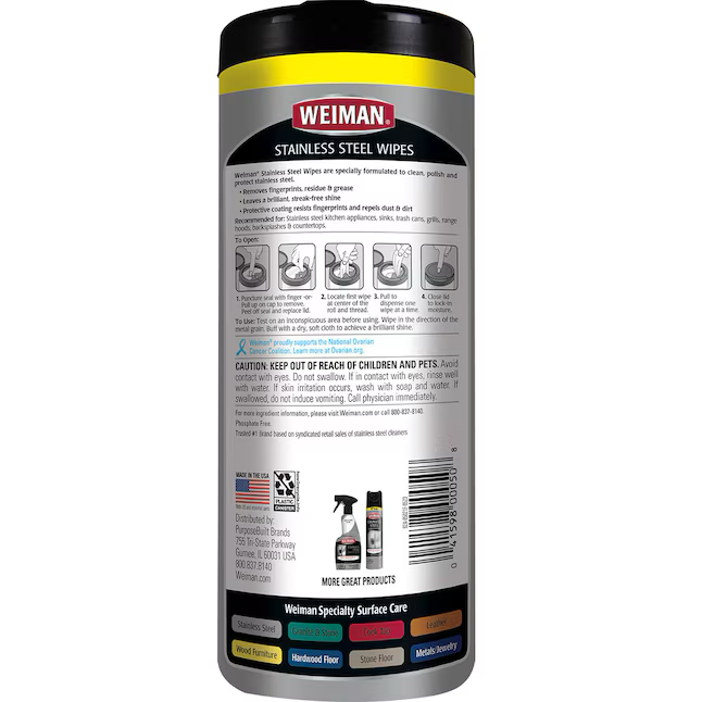 Weiman Products Limpiador fresco de acero inoxidable de 30 unidades, paquete de 30