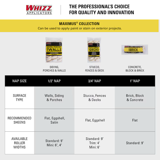 Estos rodillos MAXIMUS™ son una excelente opción para todas las pinturas y tintes exteriores.