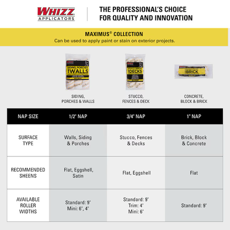 Rodillo de pintura en miniatura de poliamida MAXIMUS para revestimientos, porches y paredes de 4 x 1/2 pulgada de pelo WHIZZ (paquete de 6)