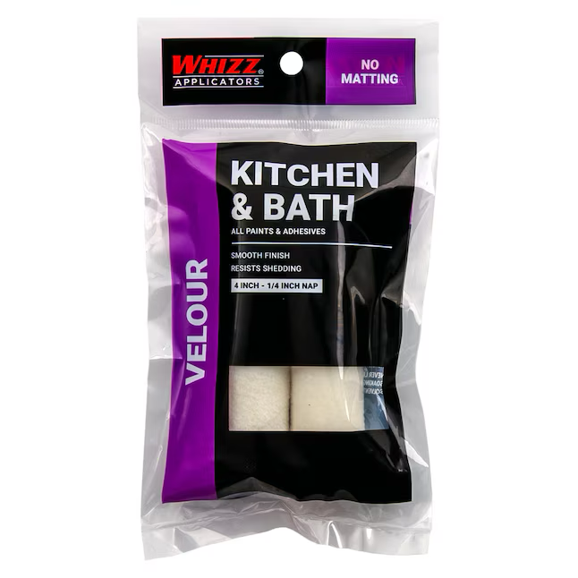 Rodillo de pintura mini de terciopelo para baño y cocina de 4 x 1/4 pulg. WHIZZ (paquete de 2)
