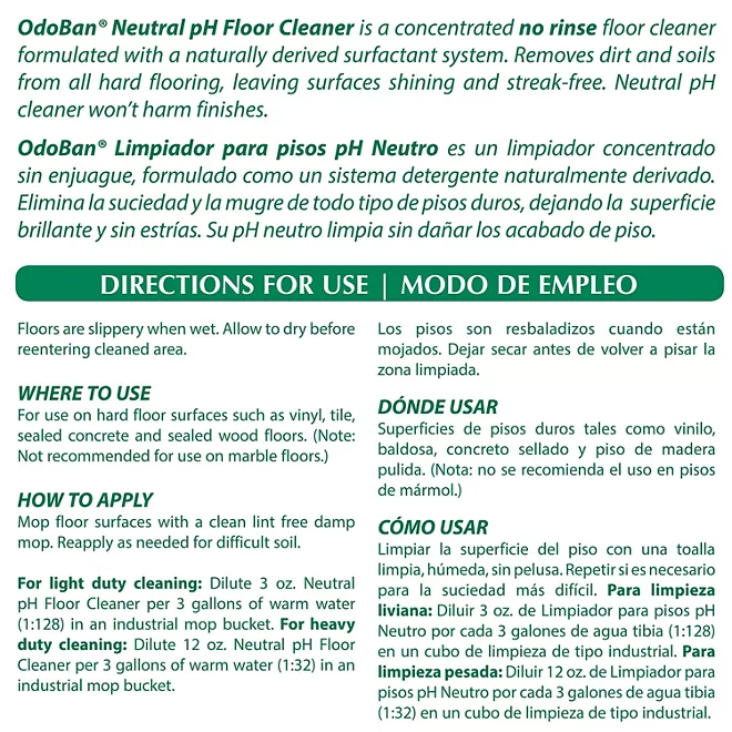• No apto para uso en: baldosas o pisos con lechada, pisos de madera con acabado de aceite y pisos que requieren encerado