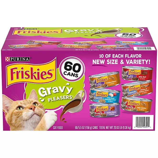 Friskies Item # 41223841 | Model # 12472322Purina Friskies Comida húmeda para gatos, paquete variado Gravy Pleasers, 5.5 oz., 60 ct.