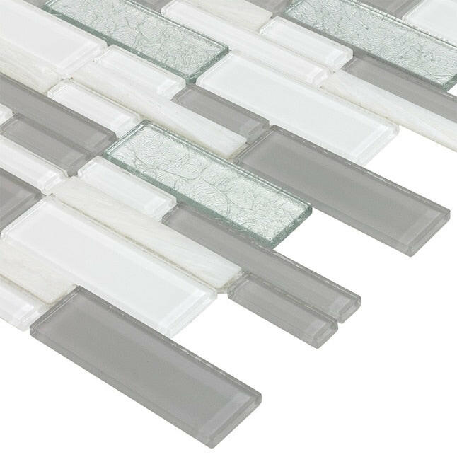 Elida Ceramica Item # 41223796 | Model # 1357372Elida Ceramica Silver Symphony Azulejo de pared lineal de vidrio brillante de 12 pulgadas x 12 pulgadas (caja de 12)