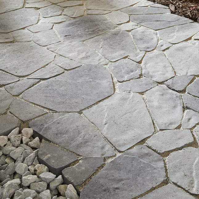 DiscontinuedOldcastle Item # 12230193 | Model # 10150882Oldcastle Piedra de paso de hormigón irregular Rio de 24 pulgadas de largo x 13 pulgadas de ancho x 2 pulgadas de alto