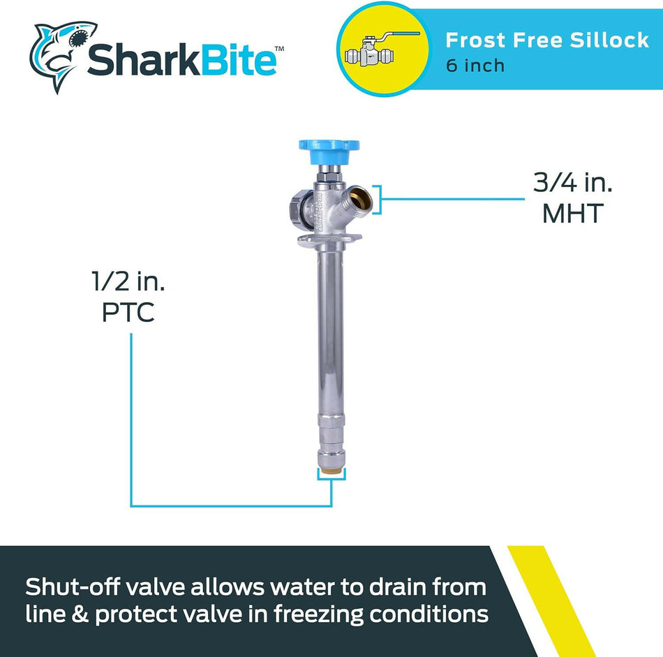 SharkBite Item # 12231605 | Model # 25744LFSharkBite Frost Free Sillcock 1/2" x 3/4" MHT 6"