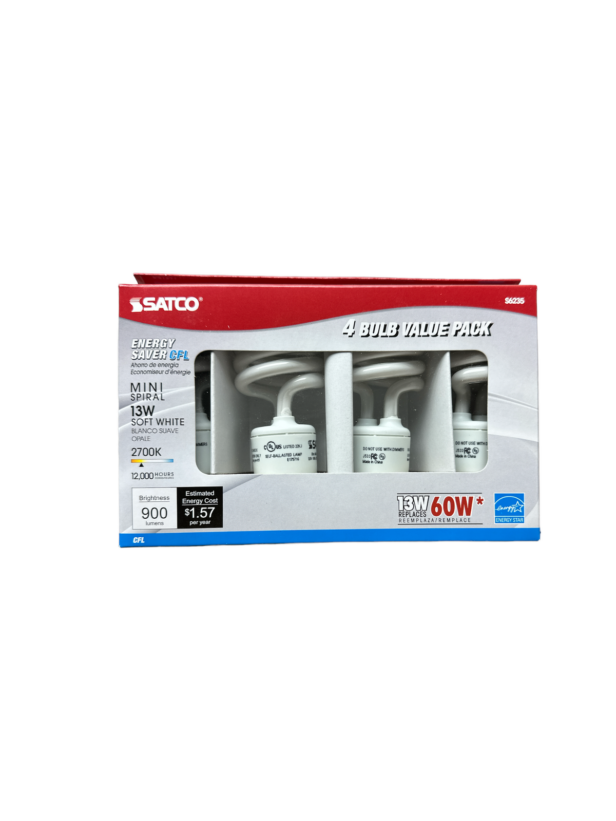 Pack de 4 Bombillas Espiral Satco 13W Blanco Suave
