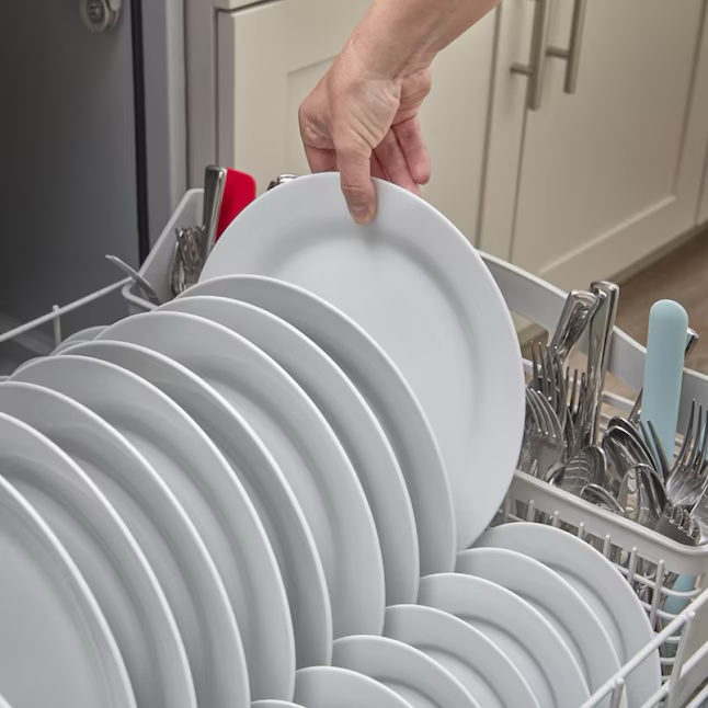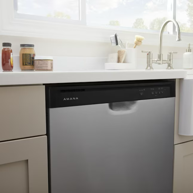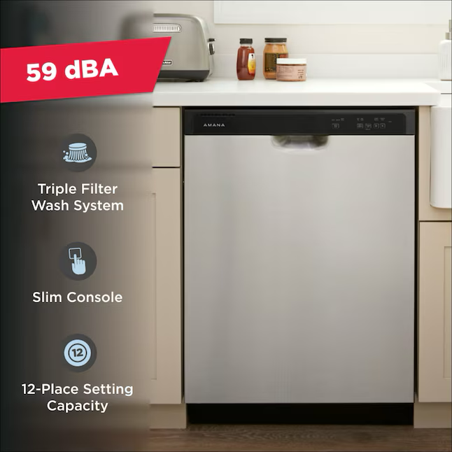 Lavavajillas empotrado con control frontal de 24 pulgadas de la serie Eco de Amana (acero inoxidable), nivel de sonido estándar de 59 dBA