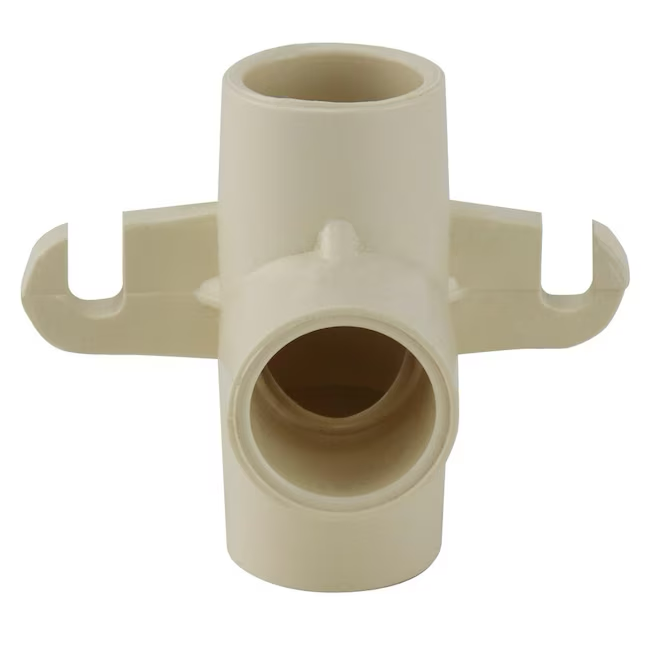 Se utiliza en instalaciones preliminares de lavabos y fregaderos en lugar de una T convencional, lo que proporciona una instalación preliminar más rígida y elimina la necesidad de un colgador de tubos.