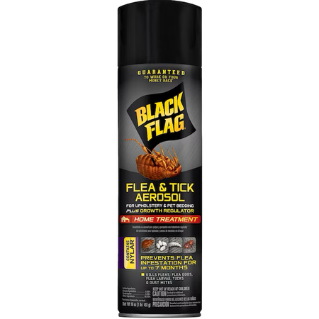BLACK FLAG Aerosol antipulgas para tapicería y ropa de cama para mascotas, 16 onzas, antipulgas