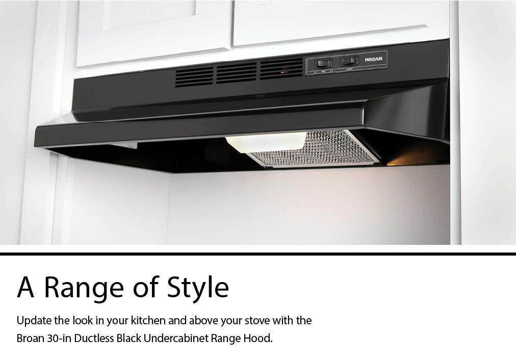 Broan 30-in Ductless Undercabinet Range Hood with Charcoal Filter - Black