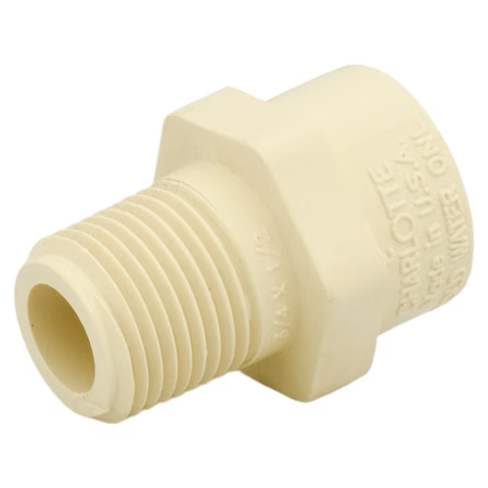 Conector Charlotte Pipe de 3/4 pulgadas x adaptador macho de CPVC de 1/2 pulgadas