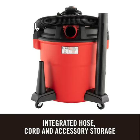 Accesorios incluidos: Manguera de 7' x 2-1/2", (2) varillas de extensión, adaptador de soplador, boquilla concentradora de soplador, boquilla multiusos, boquilla para cepillo/escobilla de goma para pisos, boquilla para automóvil, filtro de cartucho, filtro húmedo de espuma